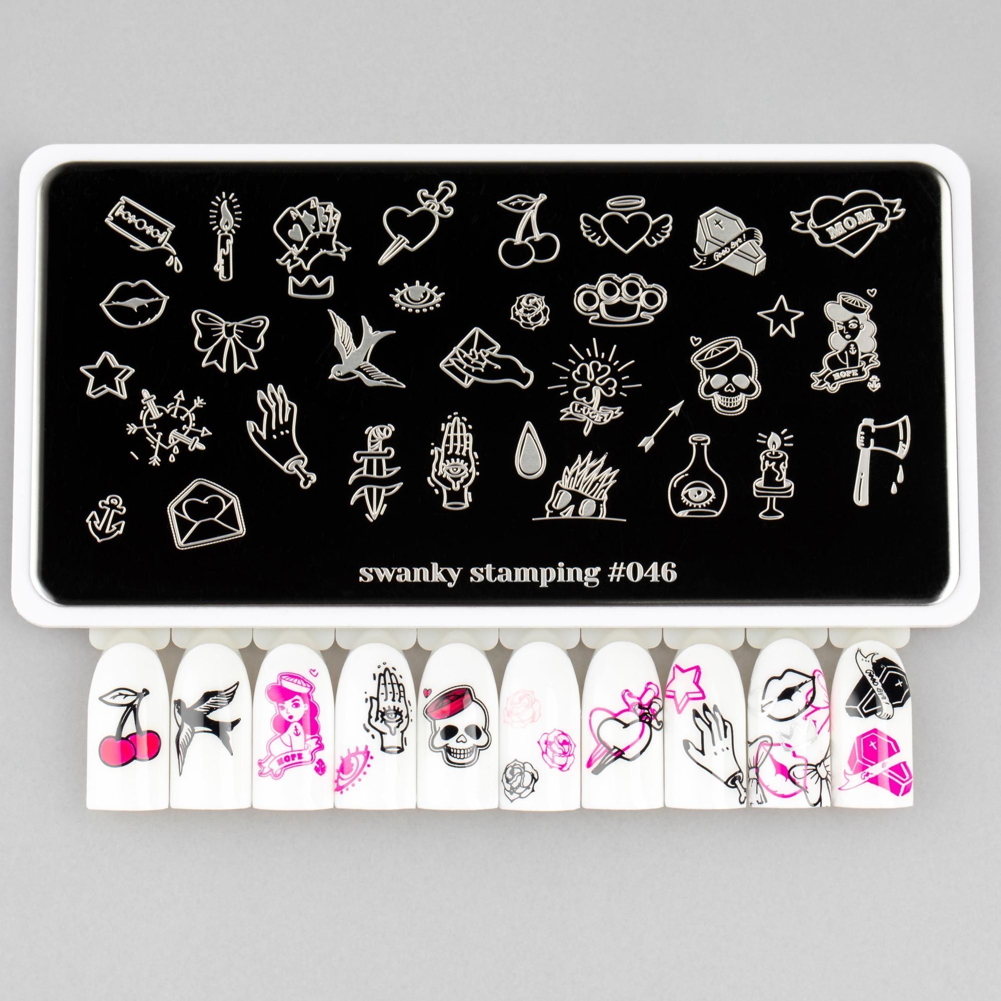 Пластины для стемпинга Swanky Stamping имеют высокое качество гравировки. При ближайшем рассмотрении видно как глубоко и четко прорисована каждая деталь. Это вам позволит перенести даже самые тонкие линии.