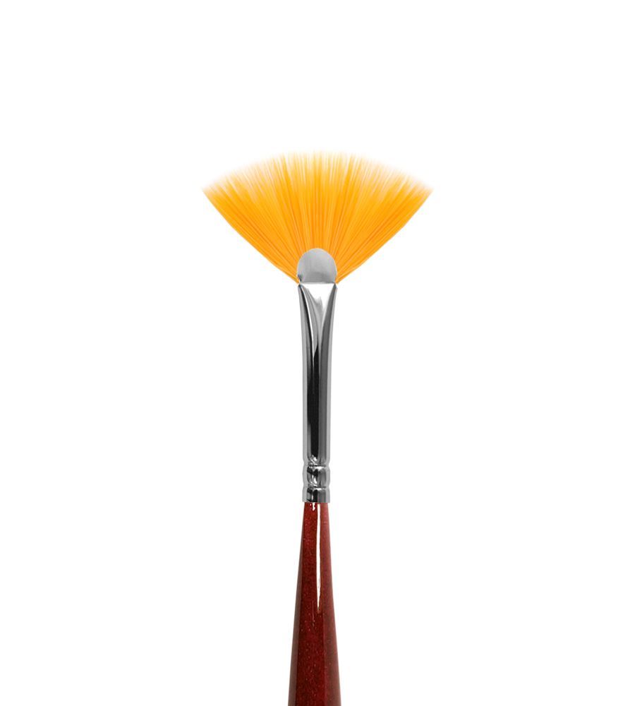 Пучок кисти выполнен из синтетического материала в рыжем цвете. Плотность пучка позволяет создавать чёткие переходы и распределять пигмент аккуратно, не размазывая. Рекомендуем использовать кисть в работе с густыми гель-лаками.